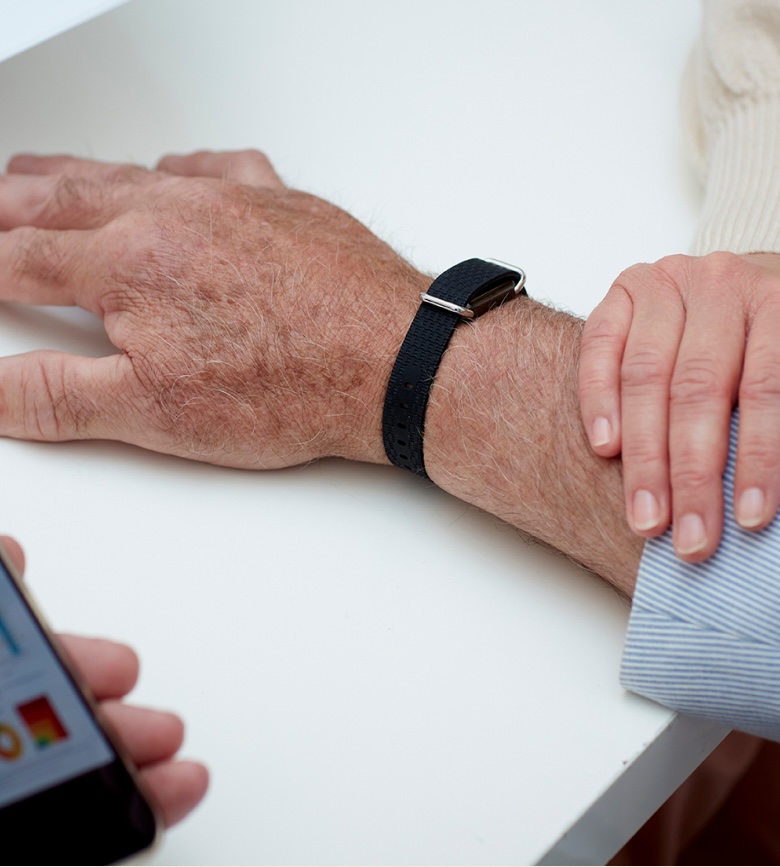 Die Optical Blood Pressure Monitoring (OBPM®)-Technologie von Aktiia analysiert photoplethysmographische (PPG) Signale, indem sie am Handgelenk gemessen werden. So lässt sich der Blutdruck schmerzfrei und ohne Aufpumpen einer Manschette bestimmen.