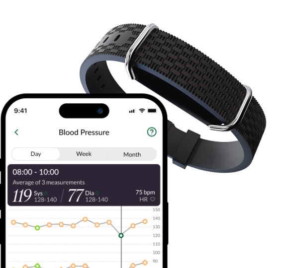 Medical-grade accuracy.24/7 blood pressure monitoring