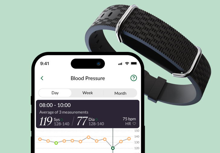 Le misurazioni manuali con il bracciale mostrano solo un’istantanea della tua pressione arteriosa, invece della tua media. Inoltre, la tua pressione arteriosa durante il sonno rimane un mistero. Queste zone d’ombra potrebbero essere pericolose per la tua salute.