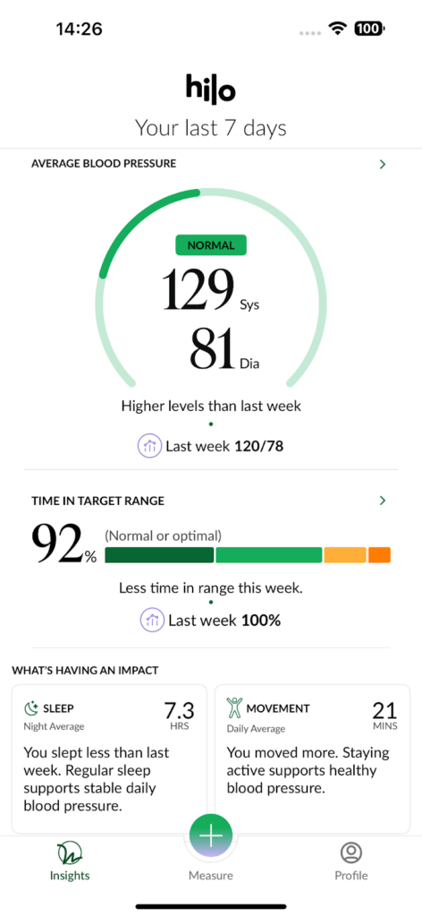 At Hilo, we’re continually looking to improve our app and data interpretation. In Version 2.6.0, we’ve made it even easier for subscribers to instantly understand their BP status, track progress week-by-week, and connect daily habits to outcomes. We’ve also simplified the user experience, enabling richer data insights in an easy-to-interpret way. Unlike wellness features in competitor devices, the Hilo Band delivers clinically validated BP data that you and your doctor can trust.