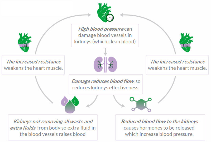When it comes to the kidneys, high blood pressure (BP), aka hypertension, packs a double-punch, being both a symptom, and a cause, of a serious condition: