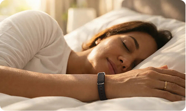 It emits no lights or alerts, is comfortable, and is designed for continuous wear, including during sleep.